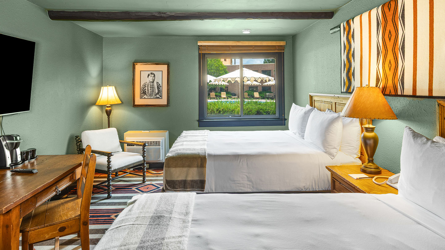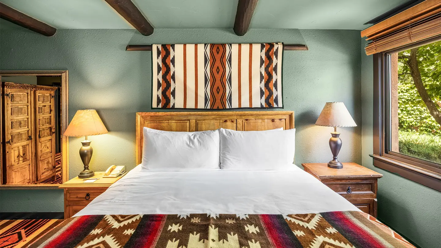 Layback, kick off your boots, and rest easy. Our 6-acre property has 128 rooms, each one a place to call home for a night, or three. Blending time-tested Santa Fe style with the type of comfort that makes you want to linger. So choose your perfect room, at your leisure.